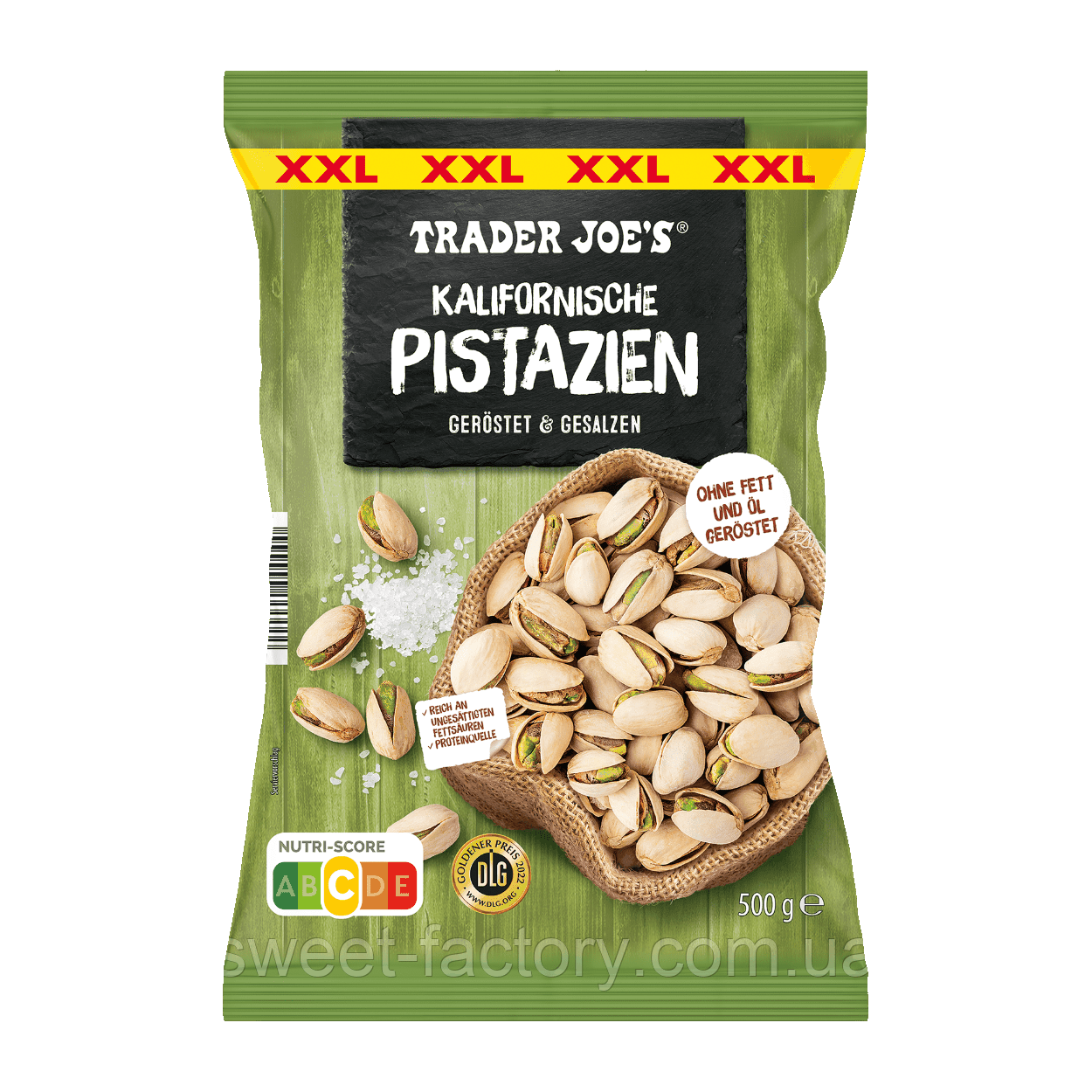 Фісташки Trader Joe's тепер доступні і в упаковці розміру XXL. Вони є важливим джерелом клітковини та смачною закускою між їдою. Особливо смачні вони в смаженому та солоному вигляді.