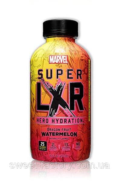 AriZona Super LXR Hero Hydration: Dragon Fruit Watermelon! Super LXR містить мало цукру та багатий на вітаміни та електроліти! Всього 25 калорій на пляшку, і ви будете перевантажені, як костюм Залізної людини. Смачно та бадьоро, ви готові підкорити свій день!