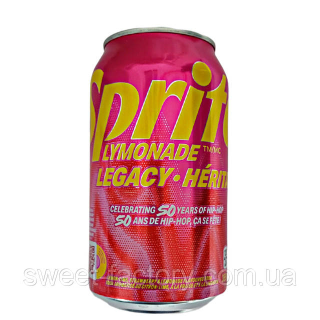 Sprite USA Lymonade Legacy — це чудовий освіжний безалкогольний напій із відтінком оригінального смаку Sprite лимона та лайма, змішаного зі смаком полуниці та лимонаду. На честь 50-річчя хіп-хоп компанія Sprite випустила це спеціальне паковання, яке є справжнім предметом колекціонування.