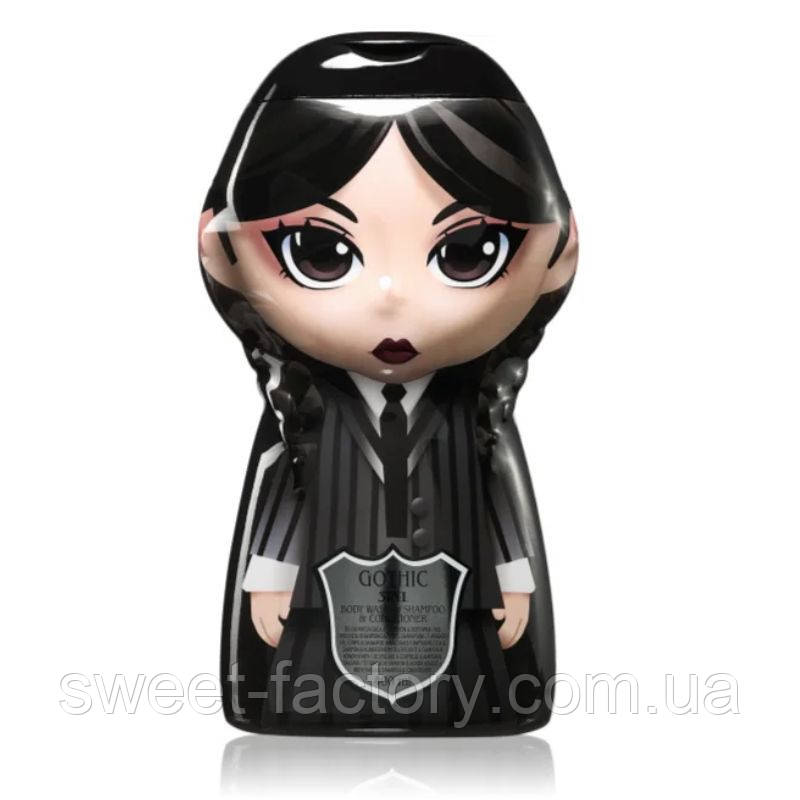 Wednesday 3D 3in1 Shower Gel Shampoo Conditioner Blackberry - це універсальний засіб для догляду за тілом та волоссям, натхненний атмосферою таємничості та індивідуальності. Формат "3 в 1" поєднує гель для душу, шампунь і кондиціонер, що робить його ідеальним для швидкого і зручного використання вдома або в поїздках.